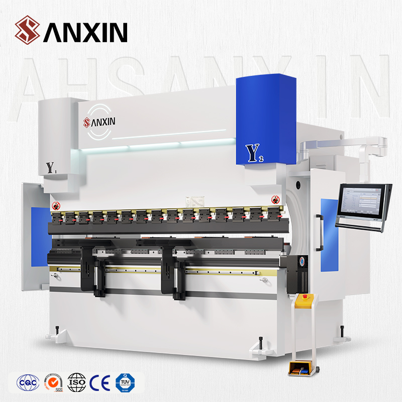 Sanxin PSA series is a precision CNC-controlled press brake with crowing in a basic but very complete configuration, standard equipped with 4 CNC-controlled axes (Y1-Y2,X,V). PSA series offers the user a heavy built, reliable, precision CNC press brake at an economical price.